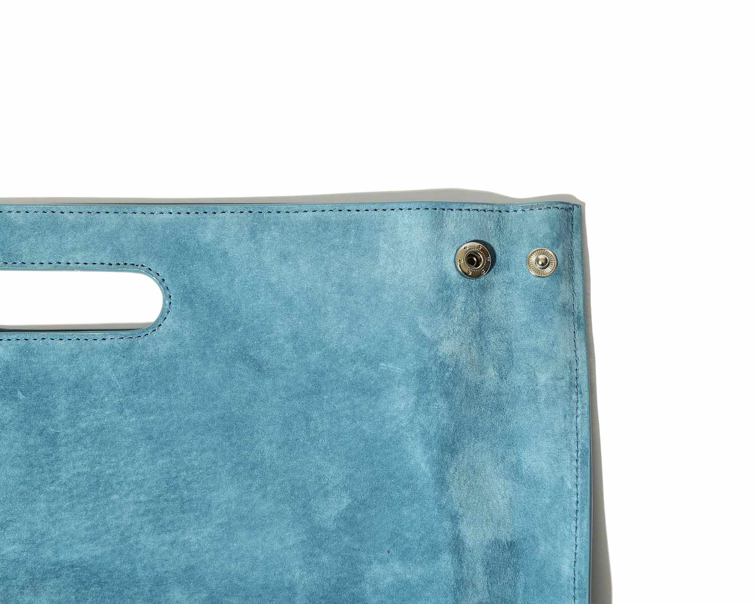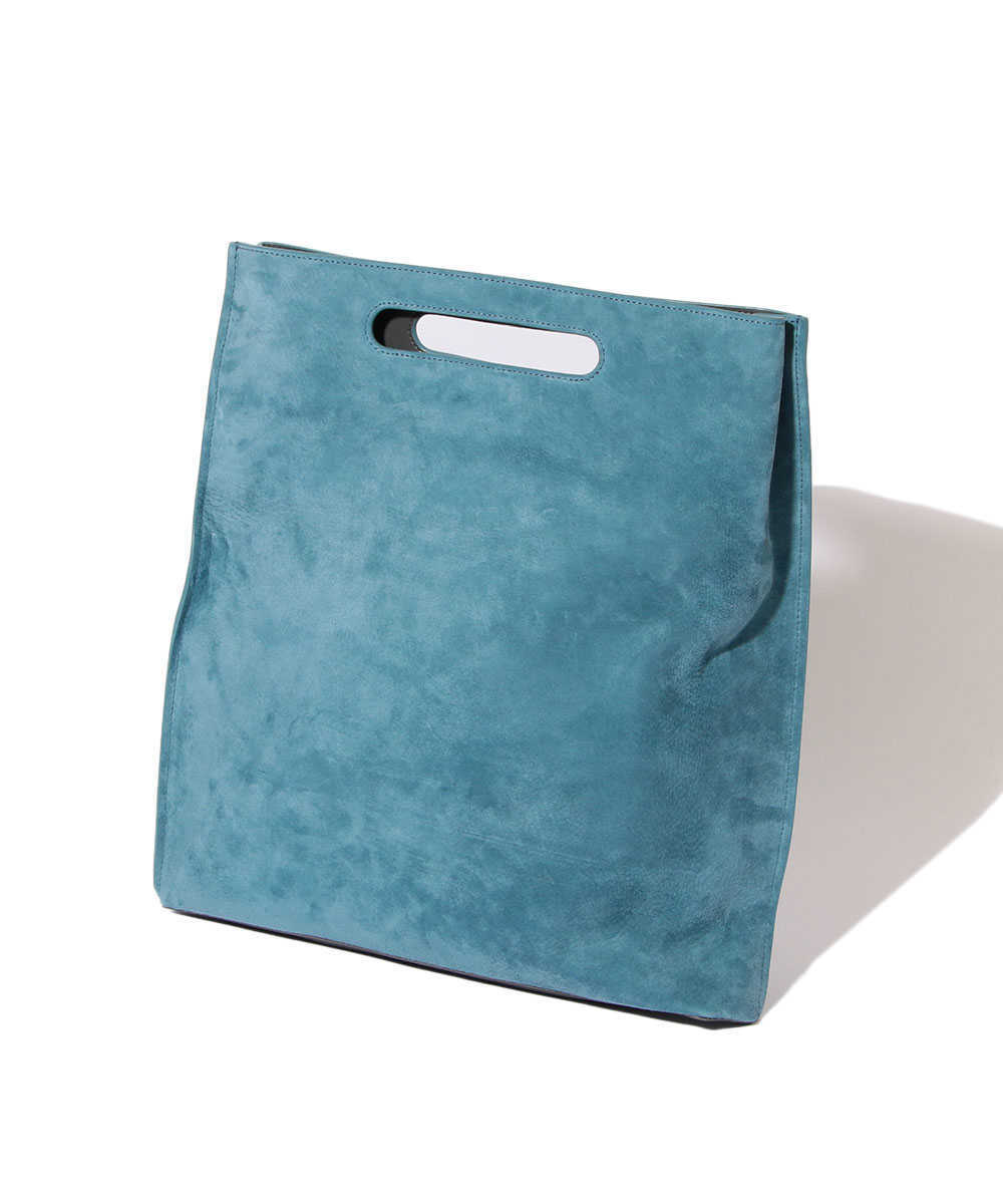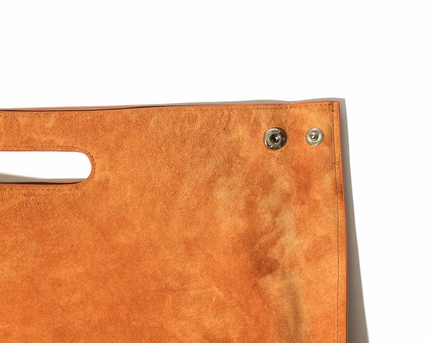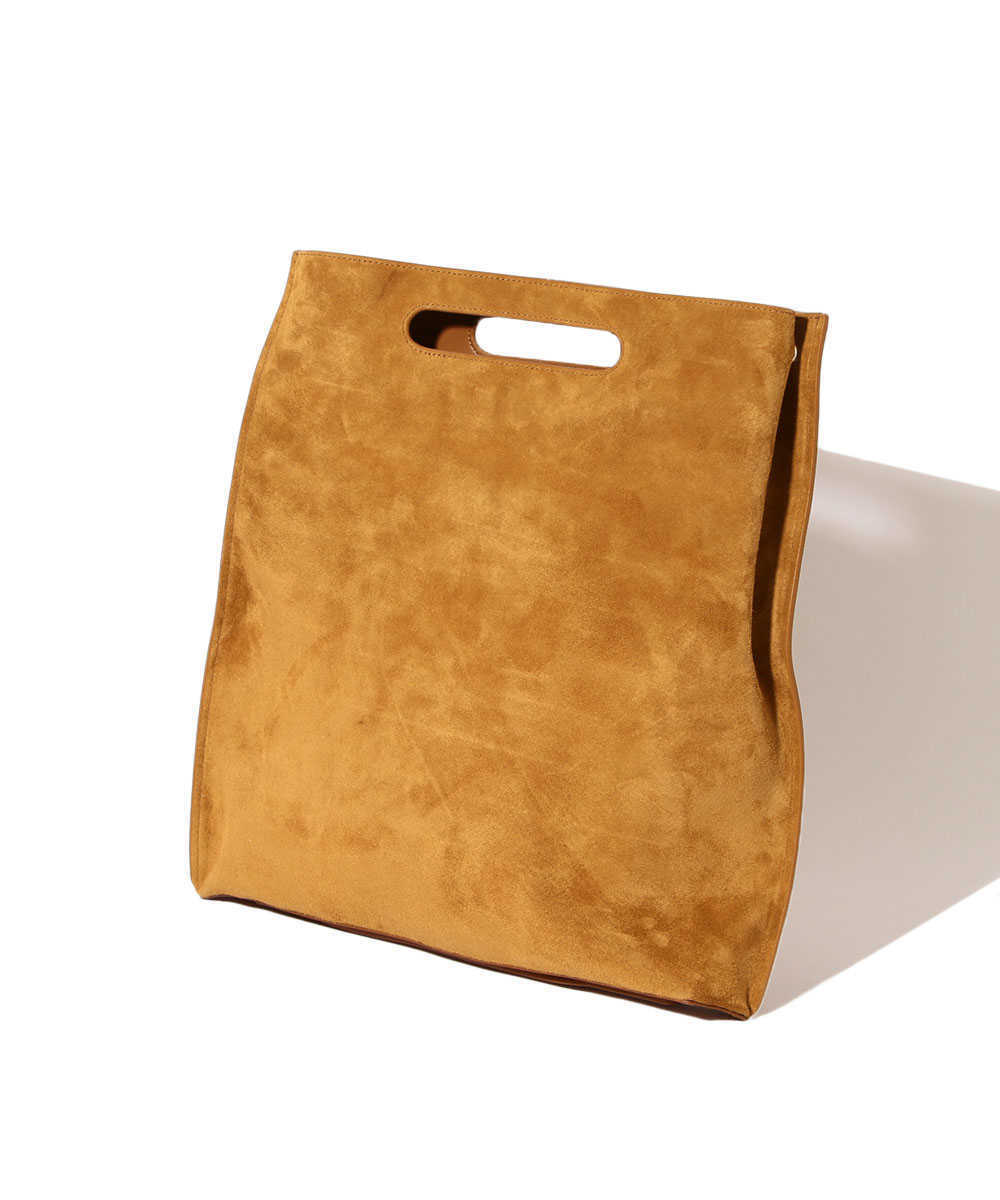 この1品は〈ザ・ディレッタント〉でもともと人気の高い型をベースに素材を別注した代物。人気の秘訣はその利便性にある。持ち手をそのままトートバッグとして使うのはもちろん、折りたたんで底面のハンドルに指を通せばクラッチバッグとしても使えるからだ。荷物の量に応じて、またコーディネートの雰囲気や気分に合わせて使い分けられるのがポイント高いってワケ。そんなバッグを今回、毛足の短い上品なスウェード素材で別注! 珍しいブルーグレーと安定のキャメルをご用意。