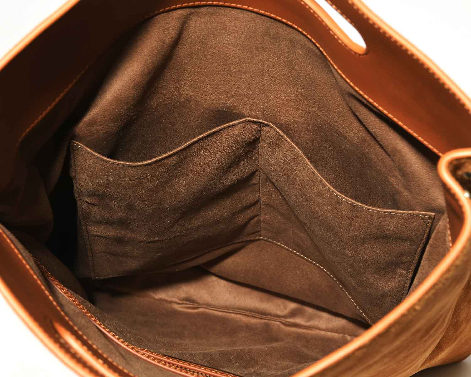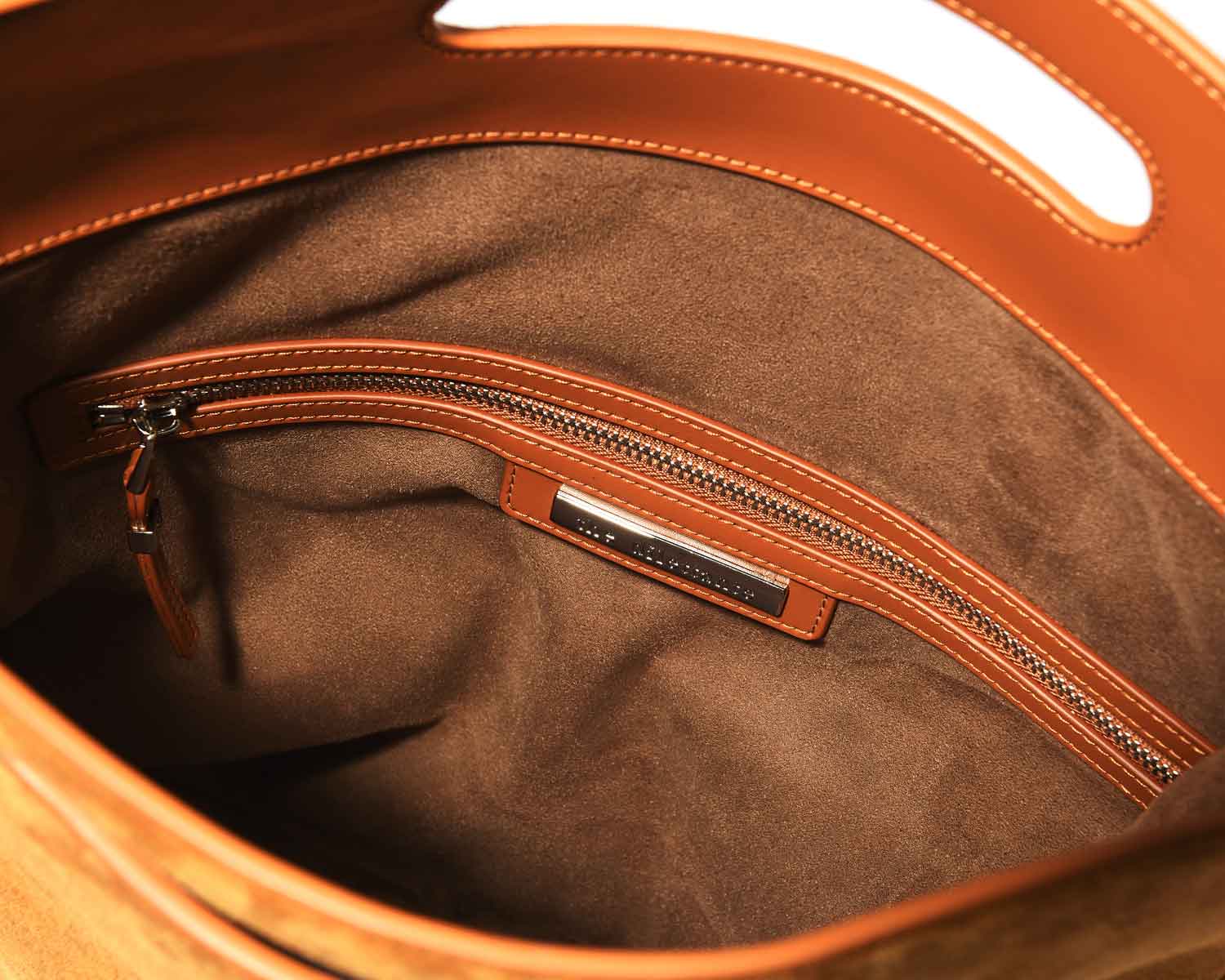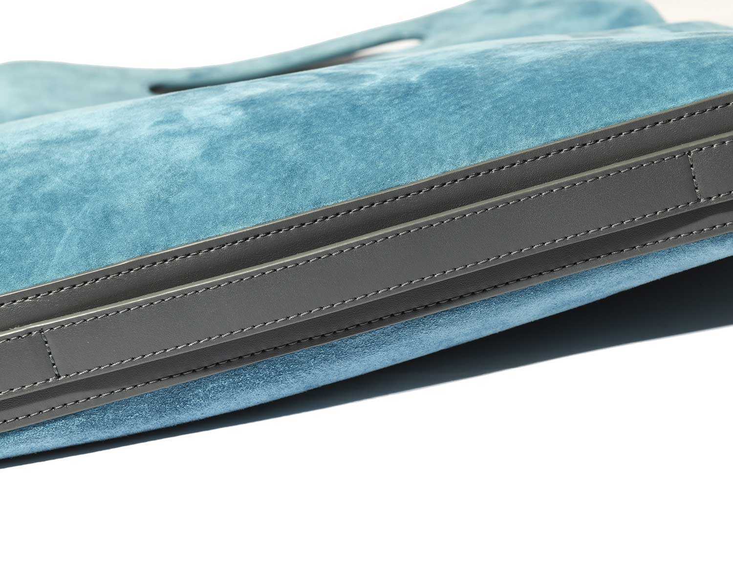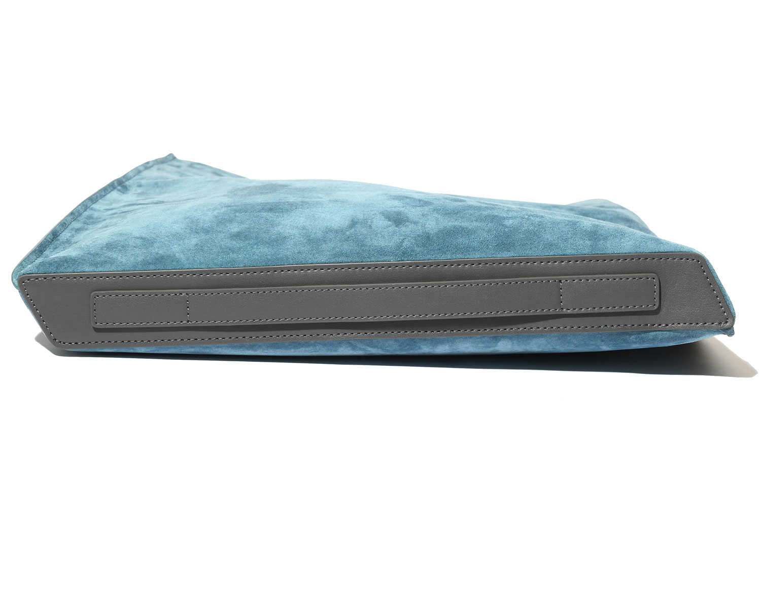 この1品は〈ザ・ディレッタント〉でもともと人気の高い型をベースに素材を別注した代物。人気の秘訣はその利便性にある。持ち手をそのままトートバッグとして使うのはもちろん、折りたたんで底面のハンドルに指を通せばクラッチバッグとしても使えるからだ。荷物の量に応じて、またコーディネートの雰囲気や気分に合わせて使い分けられるのがポイント高いってワケ。そんなバッグを今回、毛足の短い上品なスウェード素材で別注! 珍しいブルーグレーと安定のキャメルをご用意。