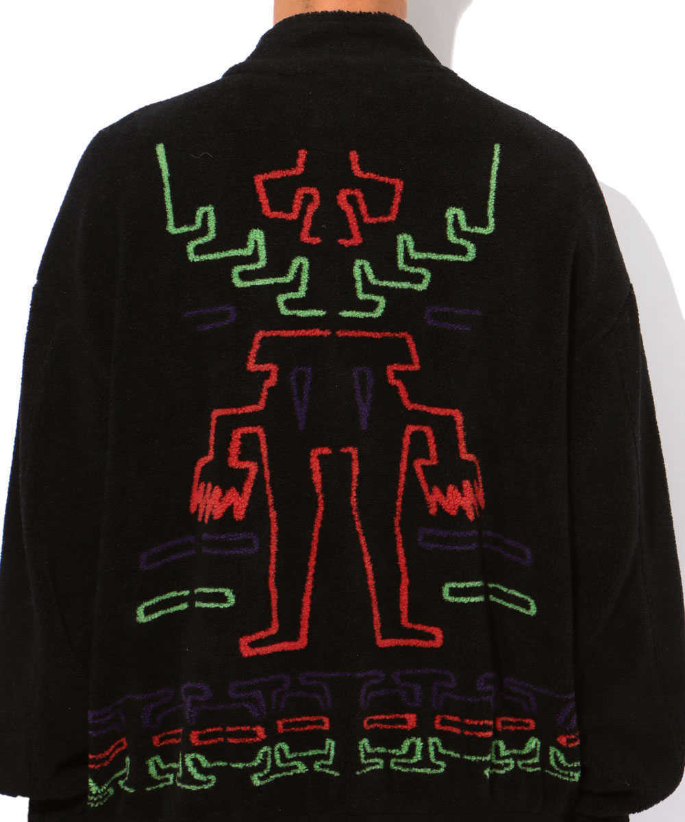 チェッカーフラッグのようなこの柄、よ~く見るとブランドの代名詞的なアイコン“パタゴニアクロス”! そんなアイコンをそのまま柄にするのではなく、ねじれたような総柄に落とし込んだあたりがこのブランドらしい。そしてベースに選んだのは毛足の長いモヘアニット。ふわっとした質感がこれまた柄に個性を加えているのがわかるはず。まさに主役級の存在感を放つ1着はこのタイミングで着るのがベストだ!
