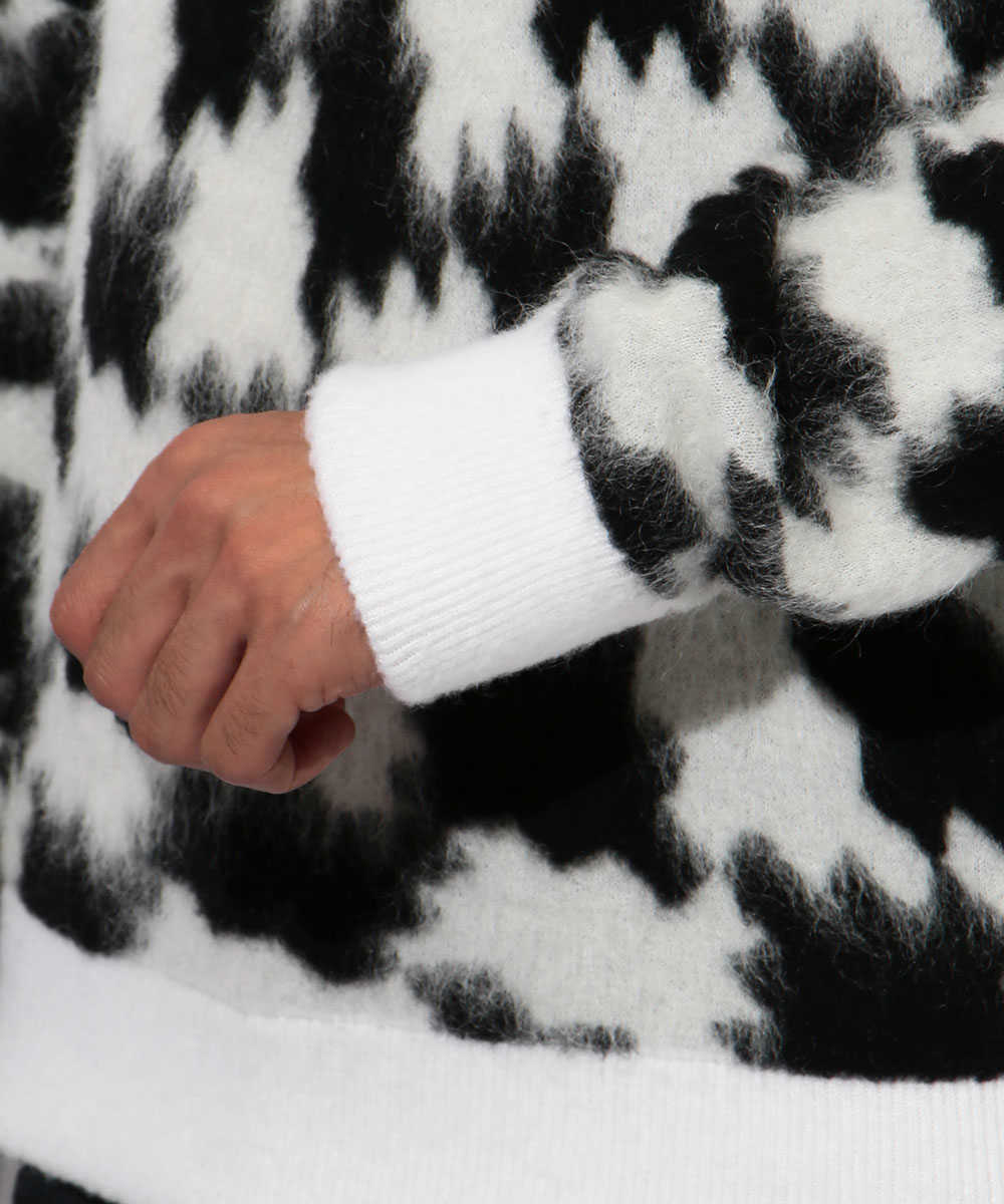 クロス柄モヘアクルーネックニット