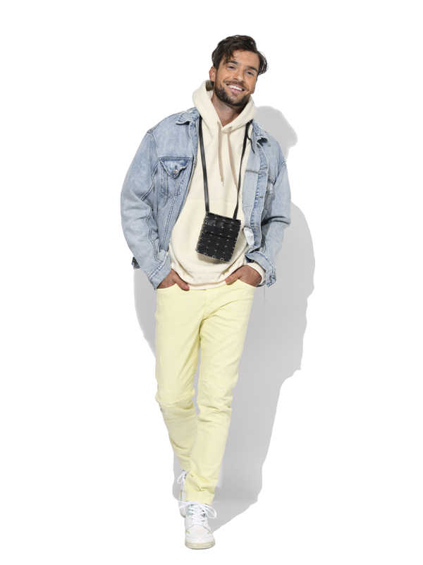 アイボリーのパーカに潮感漂うGジャンがなんとも似合う仕上がり! ボトムにペイルイエローのデニムで淡いトーンのグラデーションがかなりの上級者!