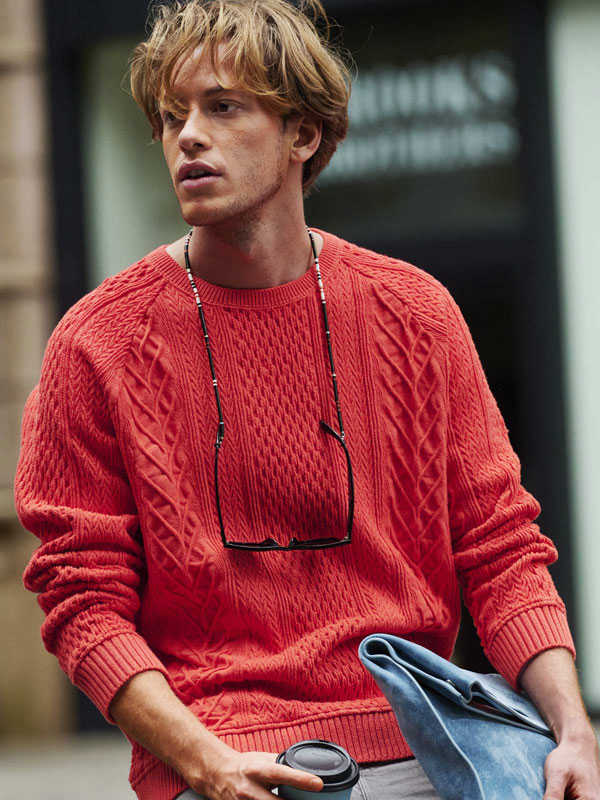 ケーブル編みの模様のおかげでロンTのようにシンプルになりすぎることもないし、上品さも取り入れられる。アウターからチラ見せするだけでも差し色効果は十分! ロングシーズン愛用できる仕上がりだ。