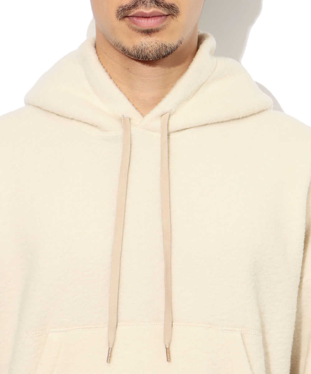 そんなわけでご用意したのがこのアイボリーカラーと爽やかなオーシャンブルー。どちらもゆったりとしたボックスシルエットでよりリラックスできる仕上がりだ。内側にたっぷりと空気を溜め込めるように作られているので保温性もかなりのもの! また、カジュアルになりがちなパーカ、それを中和すべくフードのドローコードは本革になっているのもポイント。これは正直、2色買い推奨!