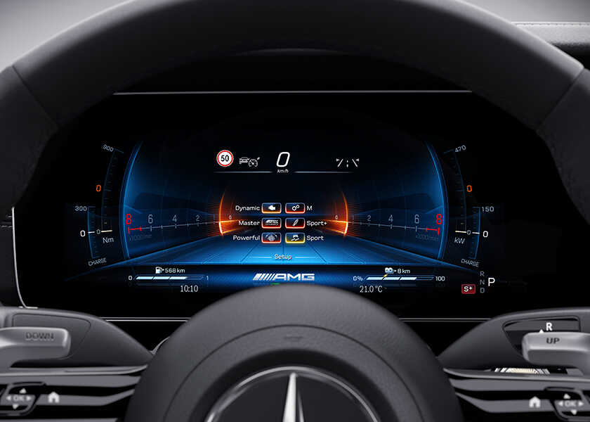 当然、同社の4ドアクーペ最高峰に君臨するのがこの“63”シリーズでもある。“Eパフォーマンス”には〈メルセデスAMG〉お馴染み、4.0ℓ V8ツインターボエンジンに加え、さらにモーター(これのみで204PSを発生させる)+6.1kWhバッテリー、そして四輪駆動の4MATIC+も装備する。つまり、かなり贅沢なスペックなのだ。