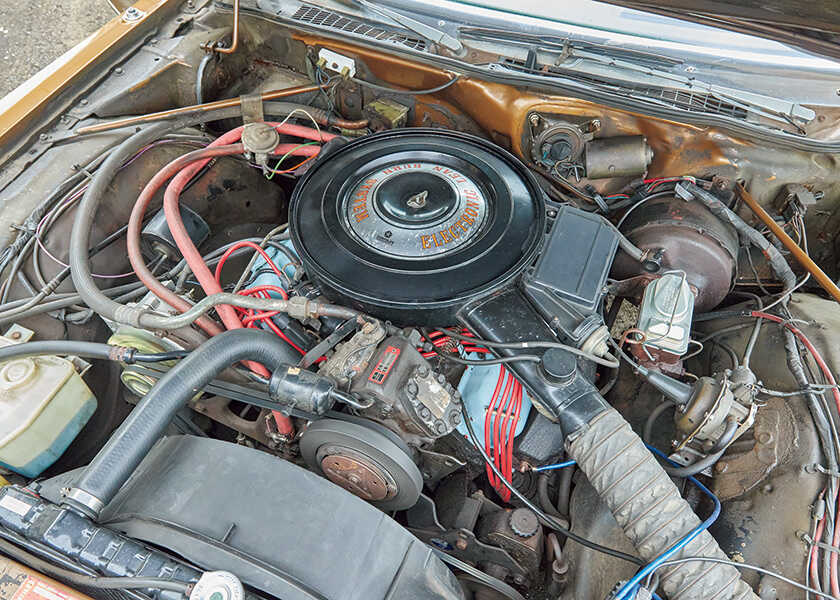 動力は6.6Lの440エンジン。ワンオーナーによって、大事に乗られていたとあって、エンジン音も静かでスムースに回ってくれる。「年代セダン特有のやわらかい足まわりによるゆったりした乗り心地がいい。まさしくクルーズしている感じだよ。〈キャデラック〉のエルドラドのほうが高級車だけど、このクルマでも十分に優雅な走りを楽しめるよ」