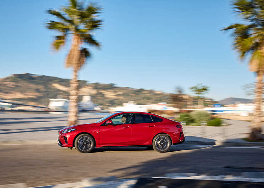 2025年に日本に登場した新しい2シリーズ グランクーペは、かなりオトナな印象になった。全体的にシャープに、先代よりもよりFRっぽい、つまり『〈ビー・エム・ダブリュー〉ファミリーの一員らしいフェイス』になったとでも言ったらいいかな? 冒頭に述べたとおり全長4550×全幅1800×全高1435㎜という、驚くほど取り回しのよいサイズ感を感じさせないほど、スリークなサイドビューは特に必見だ。