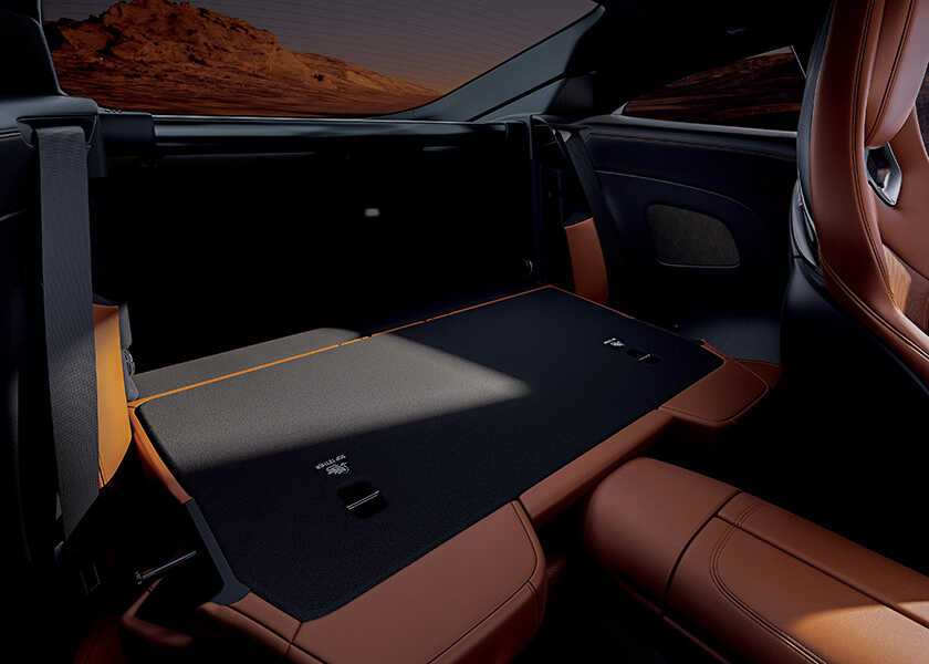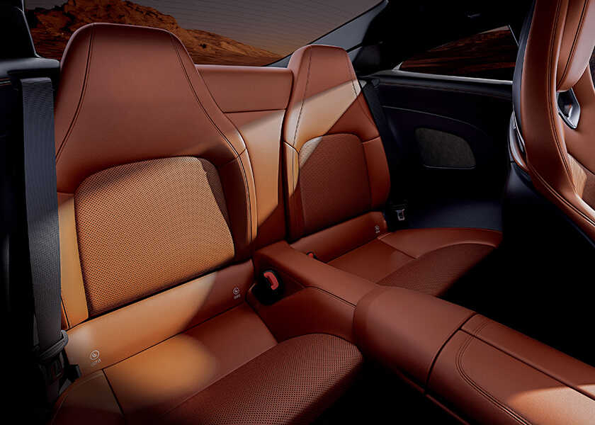 インテリアは“ハイパーアナログ”をテーマに、11.9インチの縦型ディスプレイを配置。センターコンソールにはモータースポーツのアイコンであるNACAダクトデザインを採用し、コックピットに座るたびに気分を昂らせてくれる。しかもこのスポーツカー、2+2シートを標準装備しており、リアシートを倒せば最大675ℓもの荷室が出現する実用性まで備えているのだ。