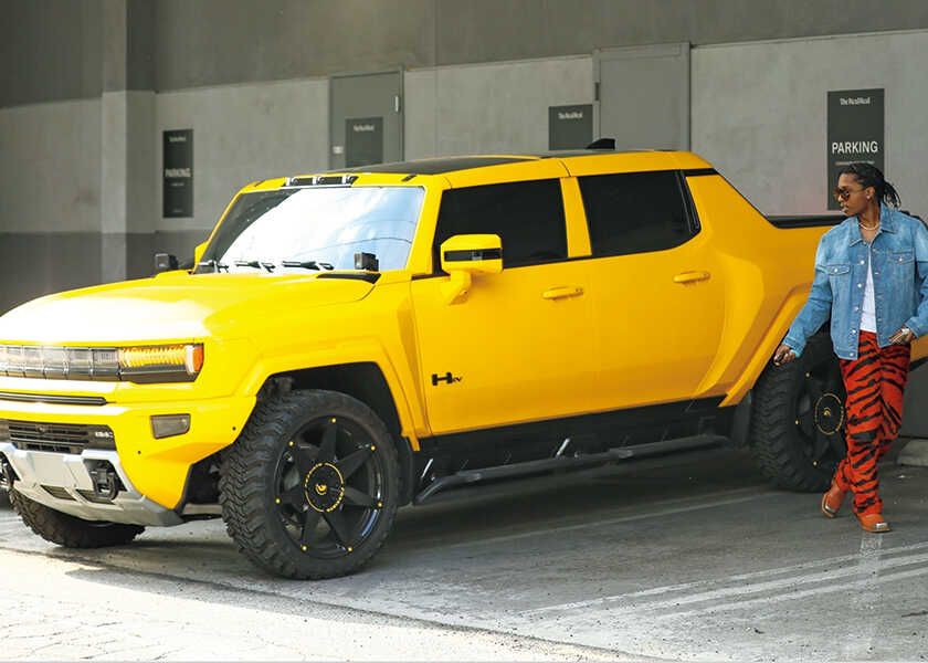 アメリカの〈ゼネラルモーターズ〉傘下にあるブランド〈GMC〉が復活させたのが、こちらの〈ハマー〉の電気自動車。エイサップ所有のピックアップモデルと、荷台のないSUVモデルが用意されている。軍用車がルーツとあって、車幅は2m超、全長は5.5m超と圧巻のサイズ!
