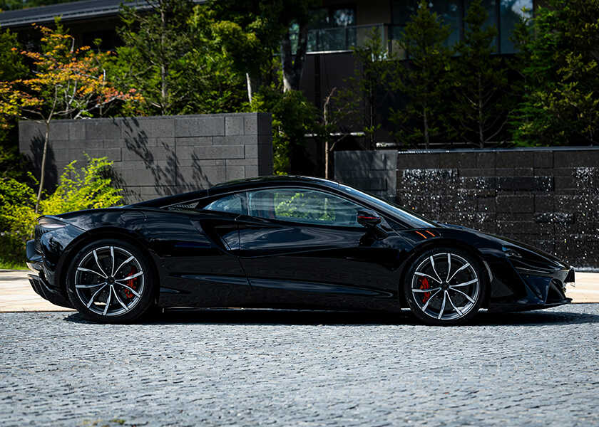 さあ、走りに行こう。ご存じのとおり〈マクラーレン〉ブランドの中で、唯一のプラグインハイブリッドシステムを持つのがアルトゥーラ。超軽量のカーボンファイバー製モノコックと前後アルミ製のフレームとシャシー構造材を持ち、システム合計で最高出力700PS、最大トルク720Nmの超弩級スペック。これはなんど思い浮かべても心がざわめく。