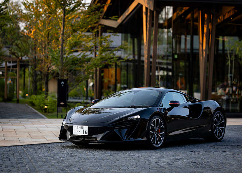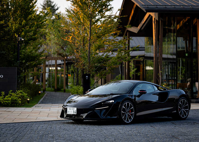 『Safari』関連メディアをよくご覧になっている人はご存知のとおり、アルトゥーラに関する記事はこれがはじめてではない。筆者も数回試乗しているのだが、正直一番好きな〈マクラーレン〉がこのクルマだと思っている。といっても今回の試乗は“久しぶり”。離れていた恋人が、以前の印象のままかどうか……、これが気になる。もちろんクルマ自体はなにも変わっていないのだから、今回の試乗はむしろ、こちら側の“気持ちの距離感“を探ることになるのだろう。と、そんな思いを胸に、試乗の拠点となる〈ホテルインディゴ軽井沢〉に到着。試乗のトップバッターはというと? それがなんとアルトゥーラ。久しぶりにしていきなりの出会いに運命を感じるくらい、とにかく嬉しいスタートとなった。