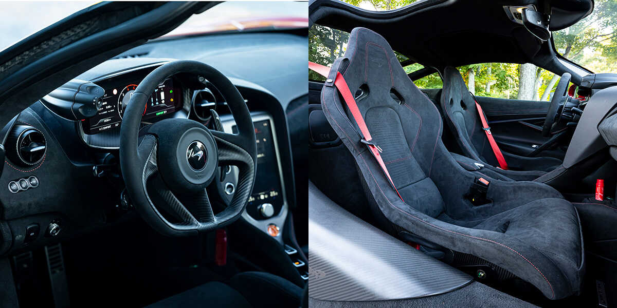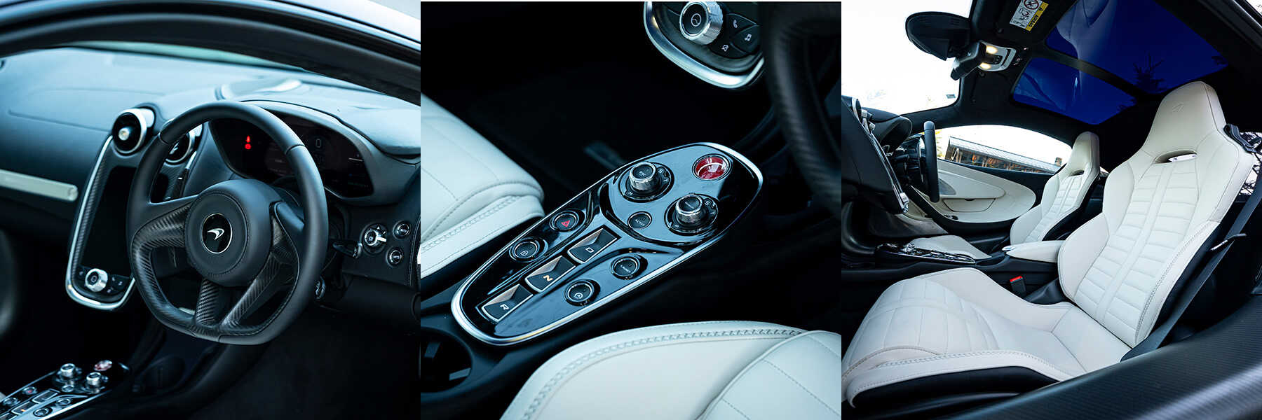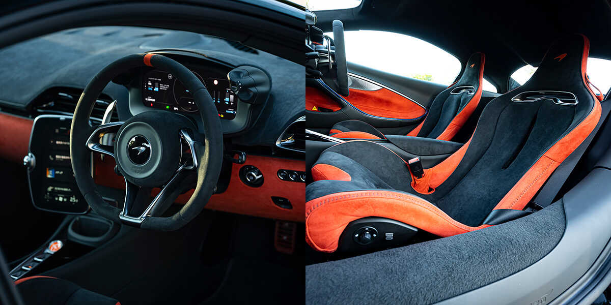 その点に関しては内装も同じ。スーパーカー好きの心を奪う“ディヘドラルドア”を跳ね上げて1ピースのレーシング仕様シートに収まると、そこには無駄なものなどない。走る気満々のインテリアが広がっている。もしかして、人によってはインテリアが少し簡素に見えるかもしれないが、ちょっと待って。実はこれこそが「視線は道に、手はステアリングに」という〈マクラーレン〉の流儀に従った結果であって、あくまでドライビングに集中するために操作系を機能的に集約。走りに必要なものが最適なポジションに配置されたことで、結果的にシンプルなインテリアになっているというわけだ。しかも多くの内装部分はアルカンターラで丁寧に覆った作り。見た目にも落ち着きがあるうえに上質感もたっぷり。まさにラグジュアリーブランドらしい居心地のよさを、今回も感じることになった。