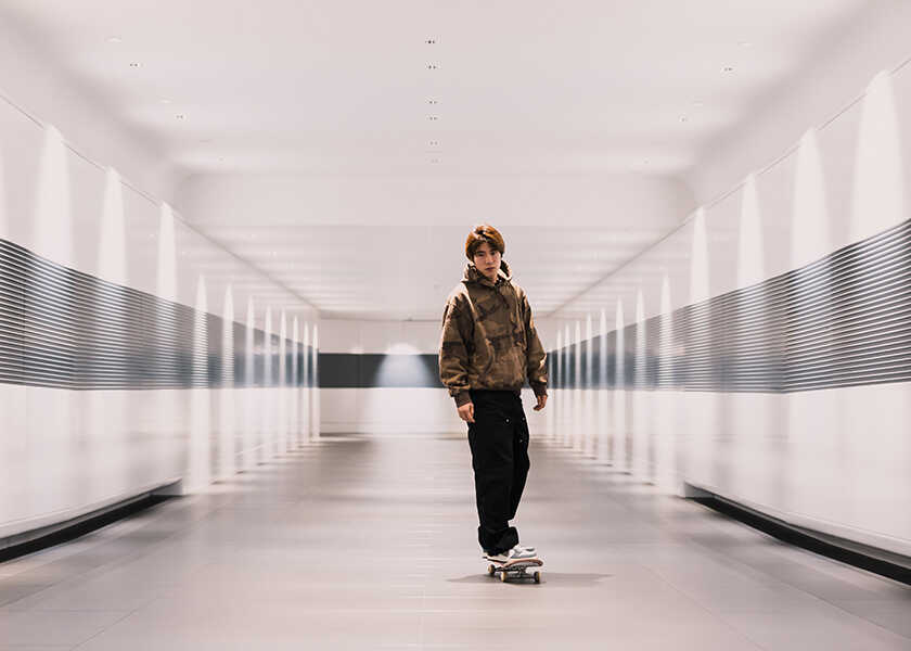 建物の地下階に広がる長く白い廊下と、そこへと通じる円形のエントランス(ロトンダ)から着想を得たテーマがこちら。「ロトンダ・ホワイト」ペイントは、ソリッドなオフホワイトカラーで、清潔感あふれる雰囲気を表現。ダークパラジウム仕上げのタービンホイールとグラファイトグレーのキャリパーが、建物内部のグレーのタイルを想起させる。スコリアグレー・セミアニリン レザーにトーナルスティッチを施すことで、対称性と光と影の調和をいっそう際立たせている。