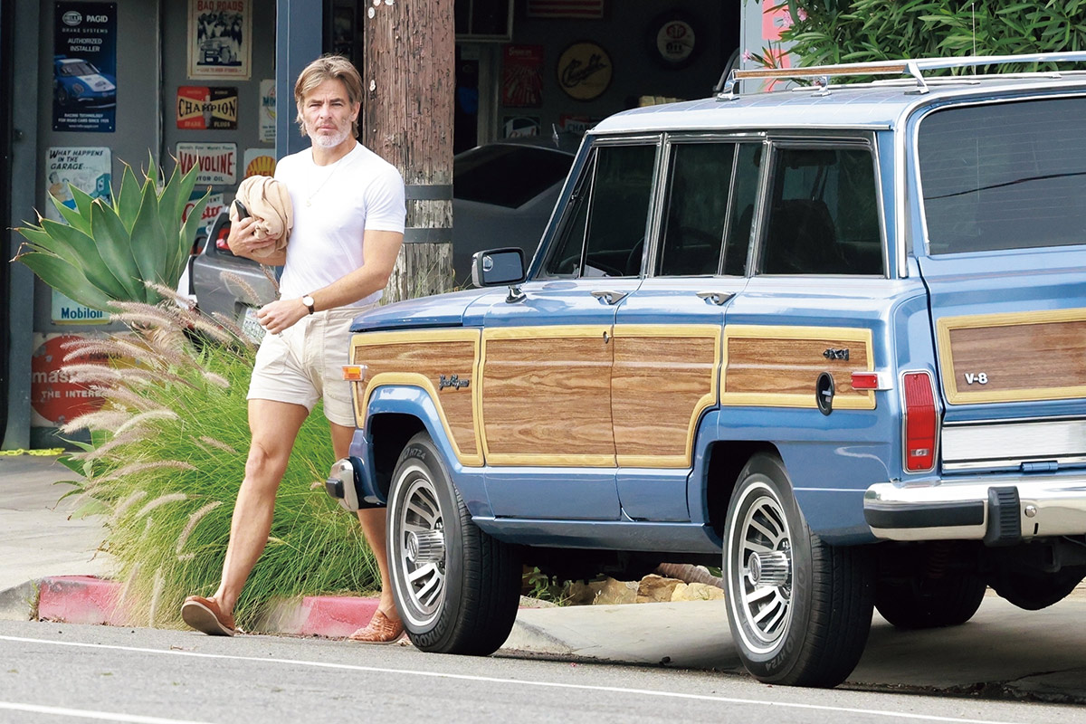 ヴィンテージカー愛が加速しているクリス・パイン。そんな彼にはブルーにウッドパネルのこの配色がたまらない!? V 8エンジンの野太いサウンドにも惚れ込んでいるはず。