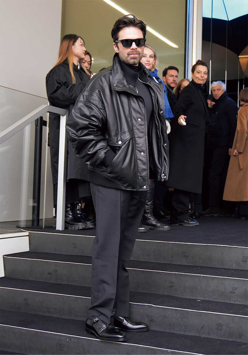 今年行われた第97回アカデミー賞授賞式でも〈プラダ〉を着用していたセバスチャン。そんな大切なタイミングだけでなく、カジュアルなシーンでも同ブランドのアウターを身につけて登場。ハードなアクションを求められるマーベル系作品に出演しているとあって、タフなレザーブルゾンが鍛え上げられたカラダによく似合う!