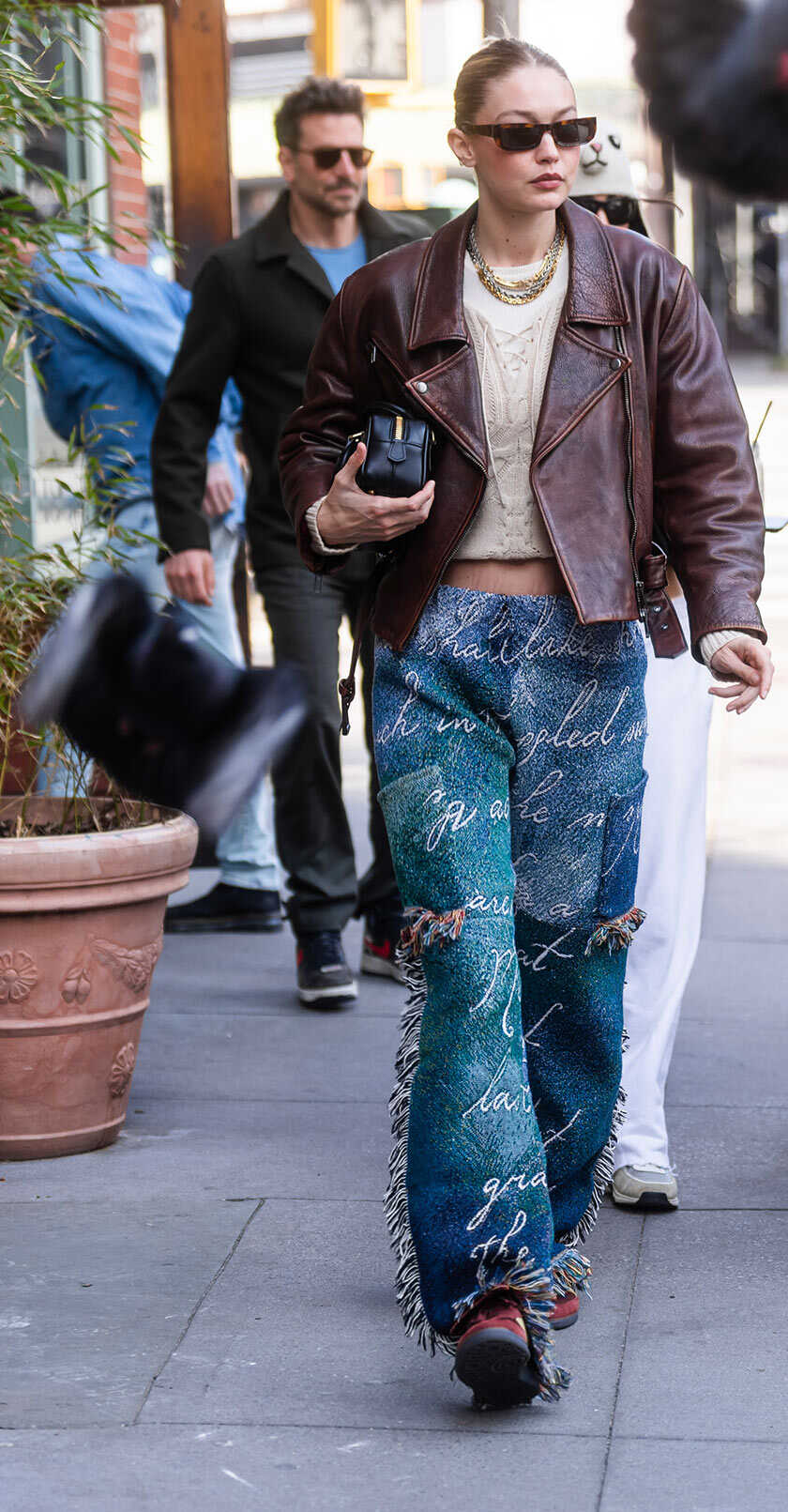 トップモデルであり、自身もアパレルブランドを手掛けるジジ。その影響か、ブラッドリーの装いは絶妙にアップデイトされ、ミドル世代のお手本のようにお洒落。2人はたびたびリンクコーデも披露しており、いずれもレザーやデニムスタイルなど気負いがない。共通の柄や色を1カ所取り入れるなど、さりげなくもセンスが光るワザにも注目。レザーのリンクコーデで主役が登場