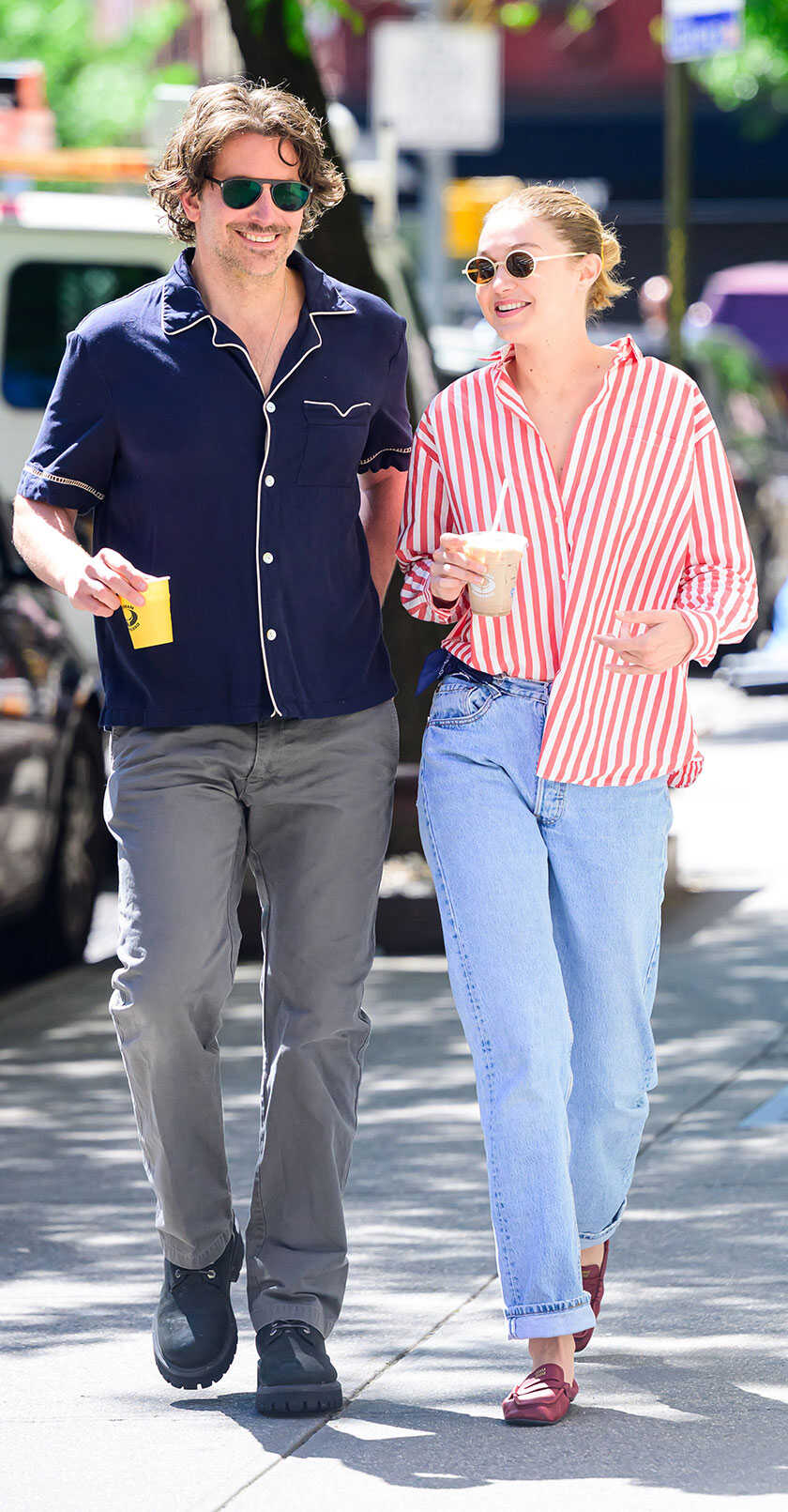普段のデートの現場は、2人の仕事の拠点であるNY。はじめて2ショットがキャッチされたのも、NYの隠れ家イタリアン〈ヴィア・カロータ〉だった。実はブラッドリーは、料理上手な祖母の影響で自身も料理好き。ジジも同じく料理が得意で、人気料理番組で優勝したこともあるほど。NYで美食デートがお気に入りなのも納得!!トリコロールカラーのリンクコーデで、NYの街を颯爽と歩く2人。彼は赤T、そして〈コットン・シチズン〉のデニムを穿いた彼女は、赤のニットがアクセントに