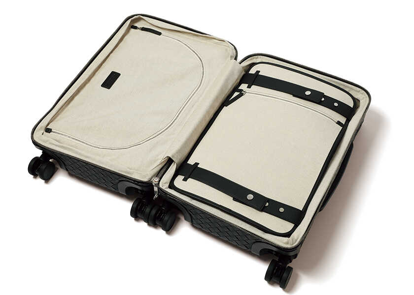 ブランドアイコンの“イントレチャート”をまとい、ハンドルや随所のトリムのカーフレザーがアクセントになった“オデッセイ”。TSAロックシステムを備え、着脱できる“イントレチャート”のタグホルダーが付属する。内側は取り外し可能なファスナー付きポケットで仕切られ、荷物を整理しやすい仕上がり。