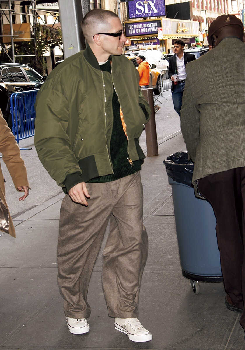 俳優ジェイクはタフなMA-1を主役に。足元がシンプルなら服の印象も引き立つ。