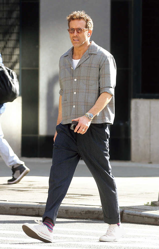 開襟シャツコーデが爽やかな俳優ライアンは、足元のローカット+ボーダーソックスで遊び心満点に。