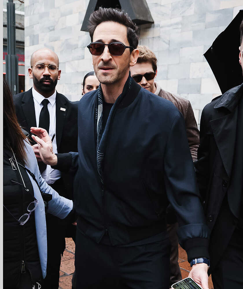 イタリア・ミラノに現れたエイドリアン。ショートブルゾンで軽快なスタイルながら、ワントーンでコーディネートし、洗練度は高め。どことなく感じられる品のよさはやはり、〈ジョルジオ アルマーニ〉という、ブランド選びの妙技。主演男優賞を受賞した第97回アカデミー賞の授賞式でも同ブランドをまとっていただけに、お気に入りなのは間違いない!