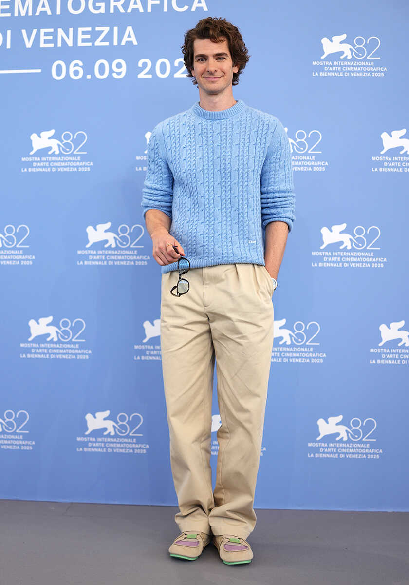 〈ディオール〉のセットアップで第82回ベネチア国際映画祭に登場したアンドリューだったが、フォトコールでは、同ブランドのリラックスしたニットスタイルにチェンジ。先日はNYでも〈ディオール〉のカジュアルなブルゾンでコーディネートした姿がキャッチされているとあって、かなり気に入っている様子!