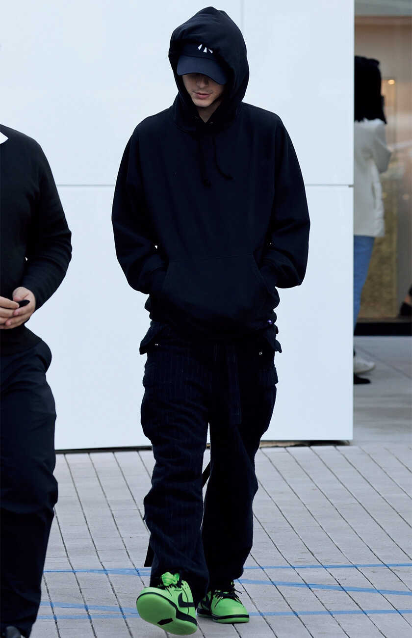 俳優ジェイコブが履くのは〈ナイキ〉×〈ジャックムス〉“ムーンシューズ”。