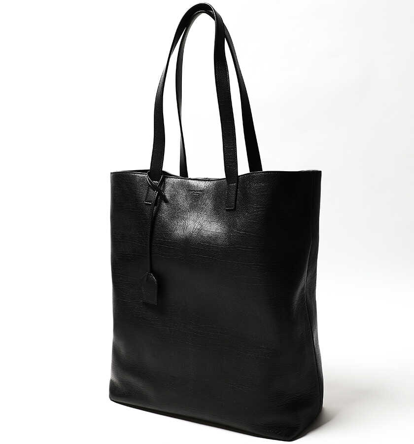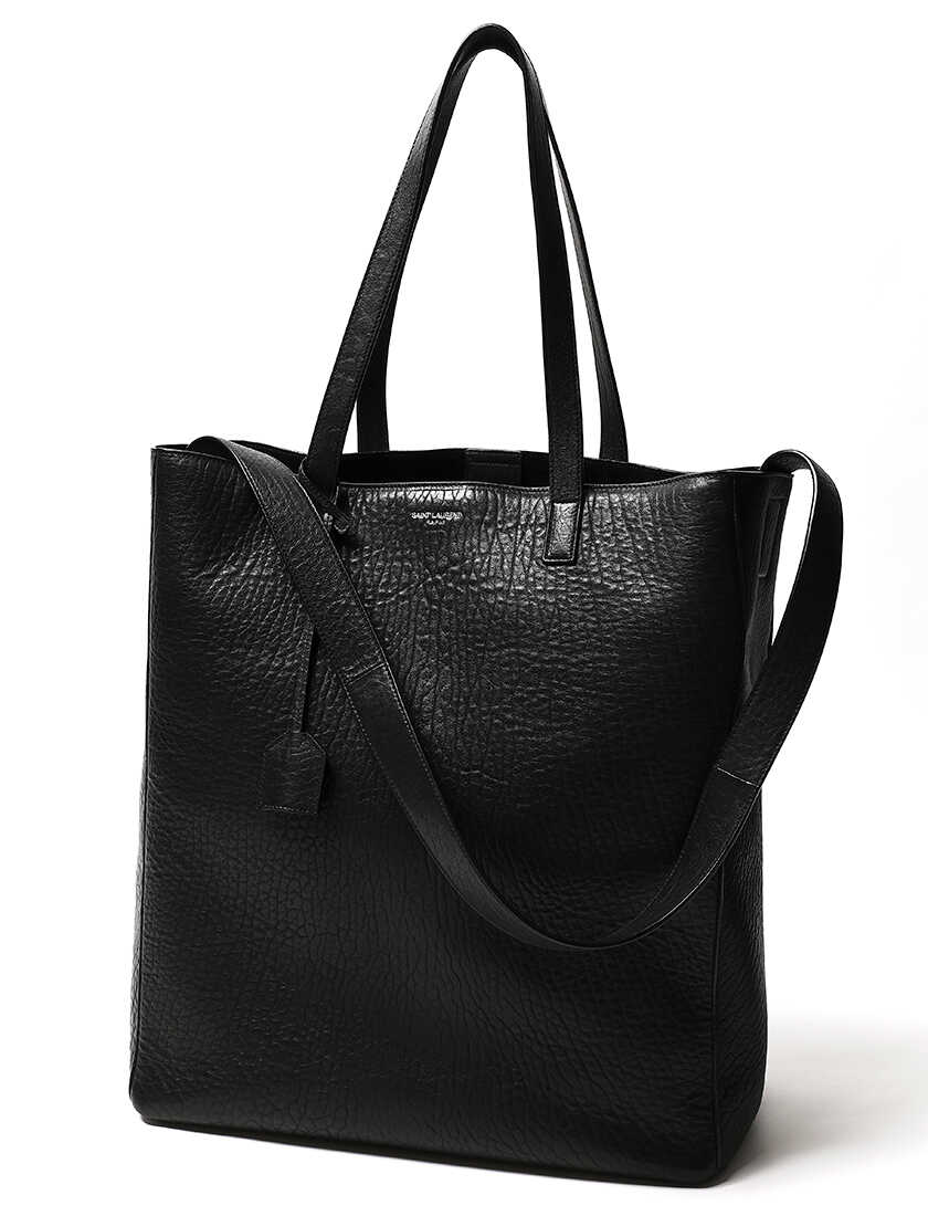 縦長タイプのトートバッグはフォルムがスマートで、都会的な印象。さらにほどよい艶を放つレザーを使い、上品かつリッチな佇まいに仕上げている。開け口には型押しでブランドロゴをレイアウト。W40×H42×D18㎝。36万8500円(サンローラン バイ アンソニー・ヴァカレロ/サンローラン クライアントサービス)