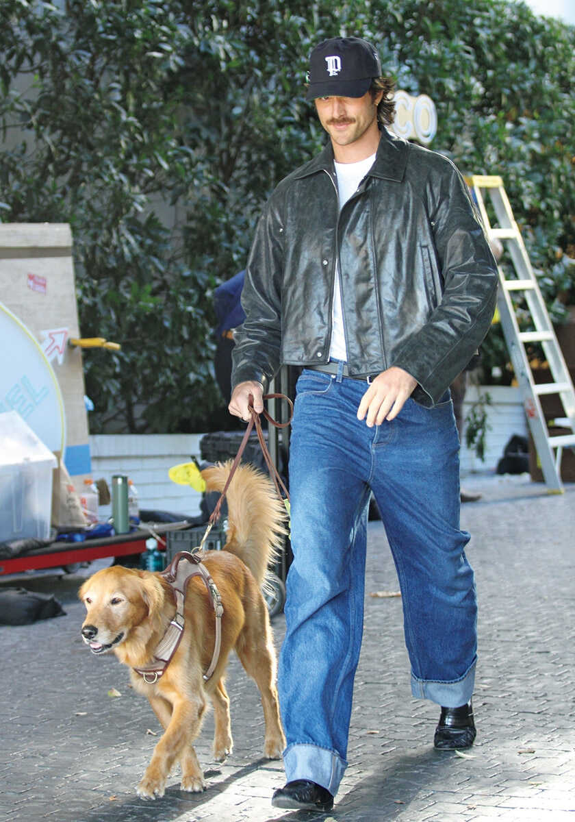 ジェイコブといえば、〈ボッテガ・ヴェネタ〉のアンバサダー。普段から同ブランドのバッグやトロリーを愛用している姿がよくキャッチされているが、愛犬のリードを持つときは、さすがに手ぶら。とはいえ、よく見ると、アウターもデニムもやっぱり〈ボッテガ・ヴェネタ〉をチョイス。バッグだけでなく服もお気に入りの模様!