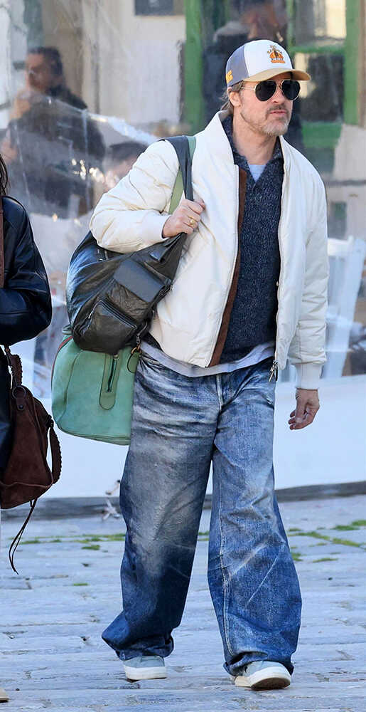 タフな印象のコーディネートながら、バッグには抜かりなくラグジュアリーブランドを持ってくるところがお洒落セレブ代表のブラッド。新作映画の撮影開始に合わせて訪れたギリシャでも、荷物を詰め込んだダッフルバッグは〈グッチ〉を選択。ちなみに同じモデルの青バージョンも持っているとあって、相当気に入っている模様!