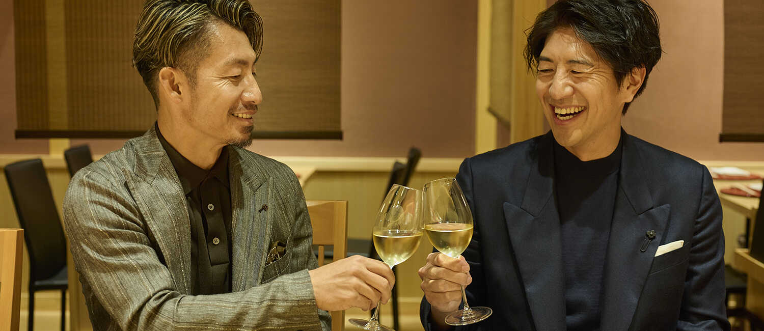 胸元のワンポイントが印象的な白のニットに、デニム生地のペインターパンツを合わせたジョー。ダメージ具合もほどよく、綺麗めカジュアルに仕上げている。こなれ感のあるドジャースのキャップが、ペインターパンツと色リンクしていて実にお洒落。
