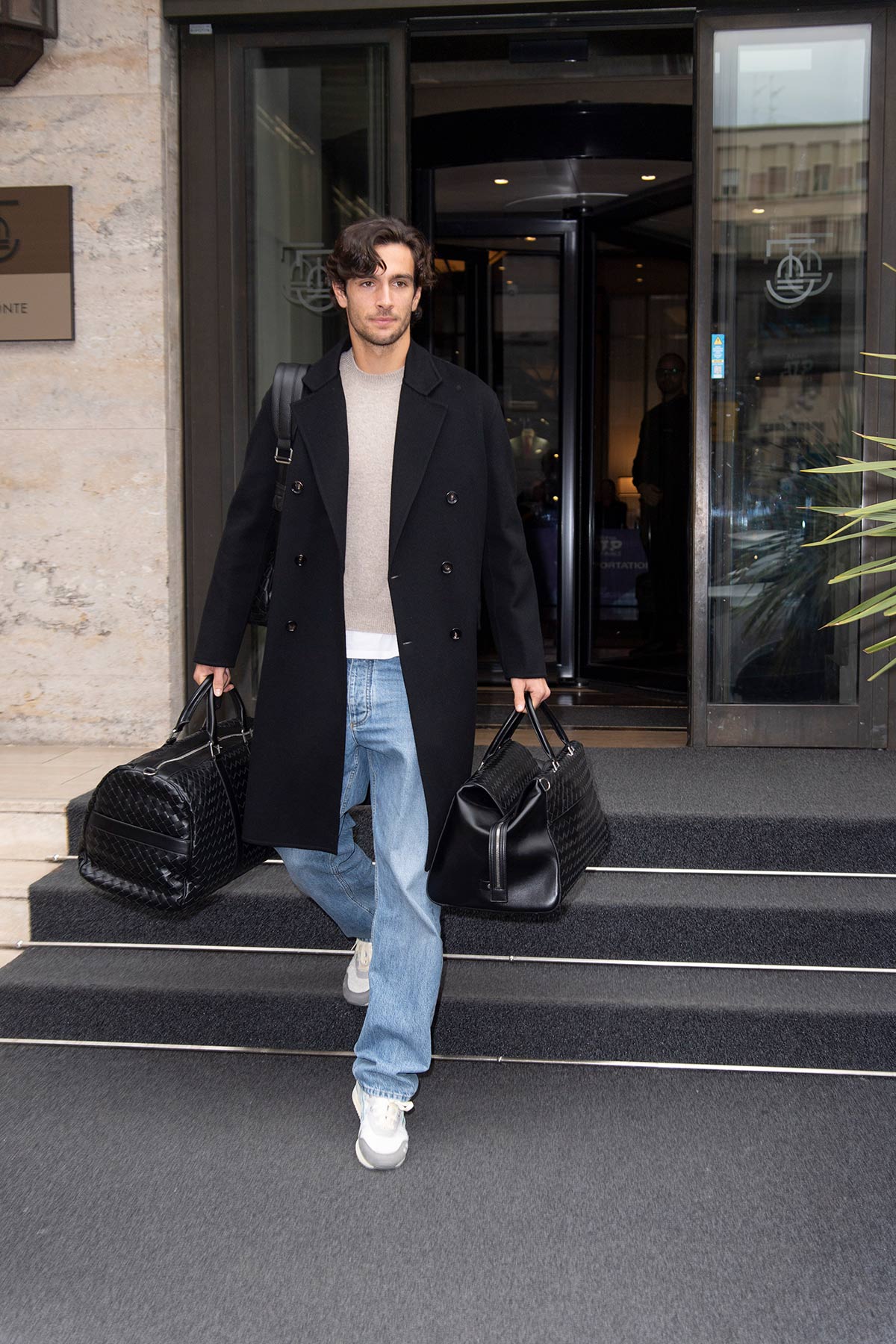 そのATPファイナルズが終わり、ホテルから出てくるところをパパラッチされた写真がこちら。テニス選手になっていなければ、俳優になっていたというだけに、さすがのスタイル。ダブルの上品なチェスターコートに淡青デニムを合わせることで絶妙なヌケを作っている。そして、彼の両手に握りしめられている旅バッグは〈ボッテガ・ヴェネタ〉のもの。イントレチャートなので、わかる人にはわかるはず。それでは、それぞれの特徴を見ていこう。