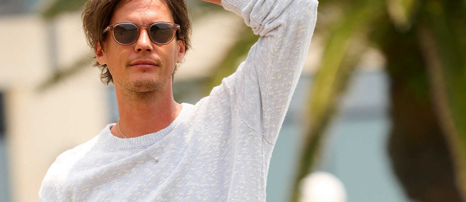 洒落者のニック。実は彼、そんなに身長が高いわけではないのだが、いつもスタイルがよく見える。その秘密は、彼の上手なシルエット作り。彼はいつもほどよくゆるっとしたサイズ感のトップにジャストサイズのパンツを合わせることで、逆三角形のシルエットを作り、スタイルアップ効果を実践しているのだ。しかも、そのゆるっと着たトップには、常にトレンドのデザインを持ってきて見せどころにしているというのもさすが。決して難易度の高くないテクニックなので、トライしてみて!