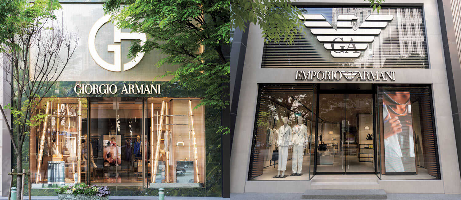 神戸旧居留地の玄関口に、〈ジョルジオ アルマーニ〉と〈エンポリオ アルマーニ〉のブティックが同時オープンした。