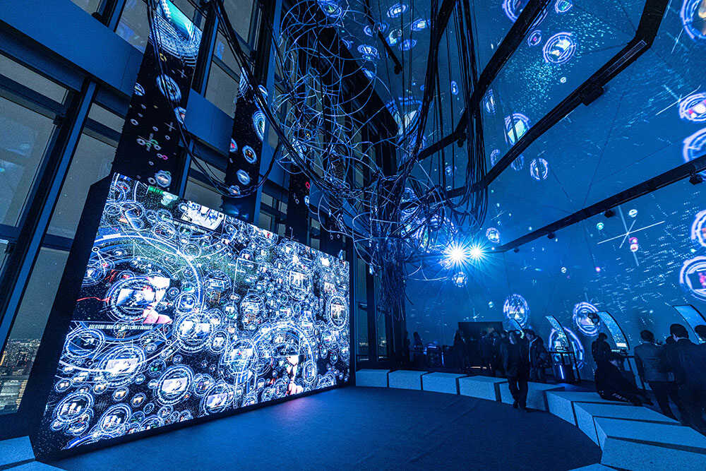 入口すぐに展示されているのが、電脳空間を想起させる巨大な没入空間『NODE(思考の結節点)』
