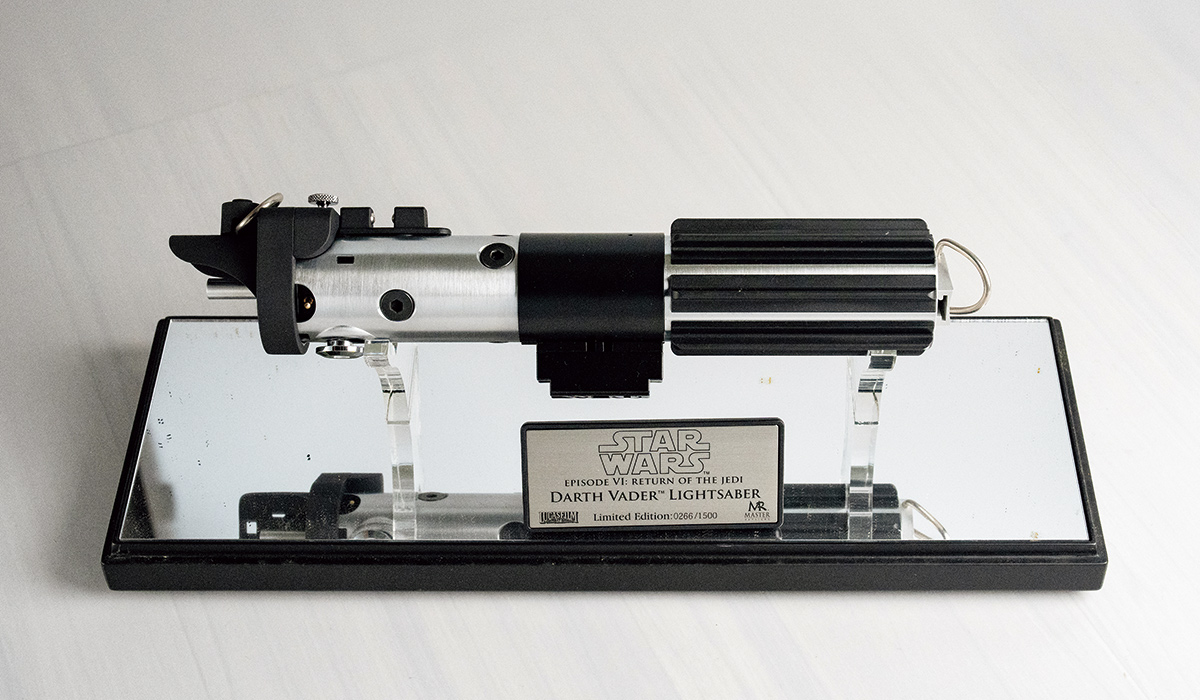 こちらのエピソード4でダース・ベイダーが使っていたライトセーバーは、エピソード6のものとは異なる。ちなみに、5で使っていたものは4とほぼ同じ。その違いを比べるのも楽しい!
