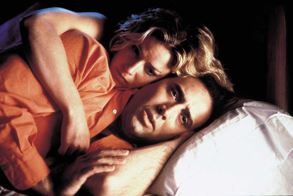 ケイジにアカデミー主演男優賞をもたらし、俳優人生の決定的なターニングポイントとなった一作。フィギス監督は主演二人に徹底した役作りを行うよう指示し、とりわけケイジはダブリンで2週間にわたって自らアルコール漬けの生活を送り、そこでカメラを回して酩酊状態の喋り方や所作を徹底的に研究したとか。四六時中ネオンに照らされたラスベガスはまるで夢とうつつの境界のようで、スーパー16mmが活写する空気感やスティングのジャズナンバーがメランコリックな幻想性に深みをもたらす。もう全てがどうでもいいと感じていたはずの主人公に生じる相手を想う気持ちと、感情の澱(おり)。それを人間の証と呼びたくなるほど脆く繊細に彩られたヒューマンドラマである。