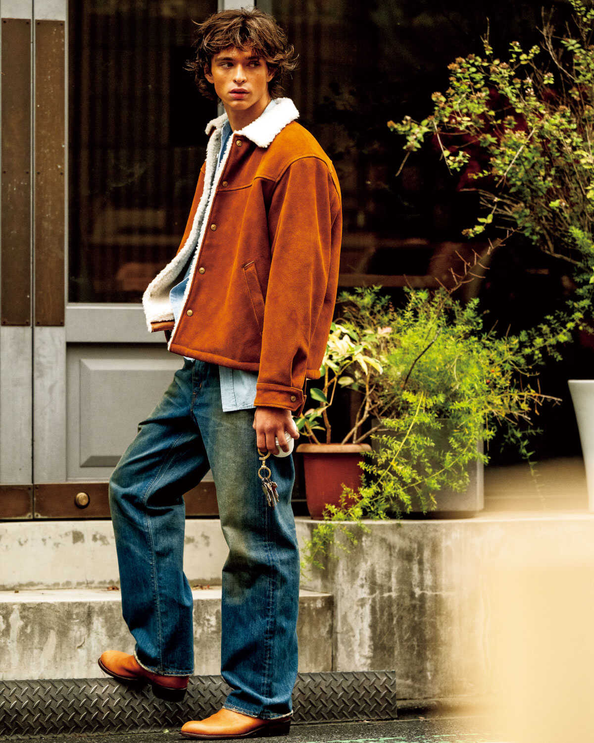 潮っぽさ全開のボアブルゾンには、デニムがワークウエアとして穿かれていた’40年代のストレートを再現した、極太の505Zが似合う。カラーは少し汚しを加えたヴィンテージなブルーなら、ほどよいヌケ感も味わえる。