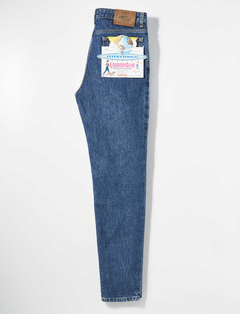 〈エドウイン〉がヨーロッパ市場に進出し、最初に発表したのが“ロンドンスリム”。こちらは、タイトなシルエットのジーンズで、その鮮烈なデザインは世界で話題となった。その後、現行の “インターナショナルベーシック” シリーズとして、世界的ベストセラーに。そして、今年2026年は、シリーズ45周年を記念して“ロンドンスリム”、“クラシックストレート”、“ニュートンスリム”の3種類が限定復刻。