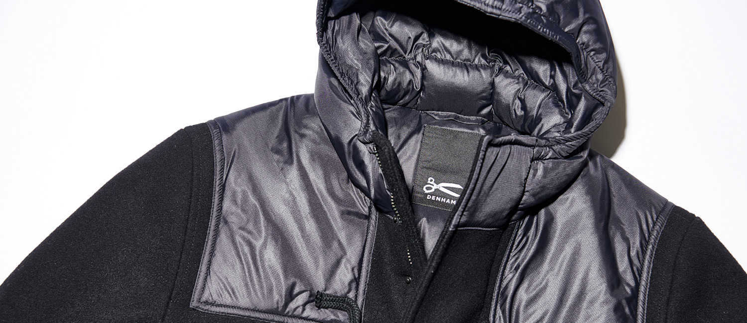 ならば、今どき感たっぷりなハイブリッドがいい!黒やネイビーなどの無地アウターもいいけれど、「普通じゃつまらない!」という洒落者も多いかと。であれば、ベーシックな色ながら、ひと工夫あるアウターを選んでみてはどうか? たとえば、大胆かつセンスよく異素材を組み合わせたハイブリッドデザインも…