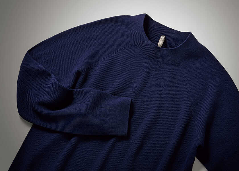 ブランドの中でアーバンラインに位置づけられた〈ヴェイランス〉の新作としてお目見えしたこの1枚は、メリノウールとナイロン繊維を特殊技術で癒合した混紡糸を採用。ニット特有の肌触りのよさがありながら、丈夫で耐摩耗性に優れる素材特性があるため、毛玉になるのを気にせず着こなせるのだ。その一方で、メリノウール特有の上品さや天然の体温調節機能の恩恵は変わらず享受できる作りに。立体的な3Dニットとして編み立てたボディは、ミニマルで都会的な佇まいに仕上がっている。また、そのシルエットも秀逸で、シェルアウターの下にレイヤリングした際の動きやすさと見た目の美しさに配慮したレギュラーフィットのボディは、ジャケットの中でももたつくことなく着こなせること請け合いだ。街はもちろん、海でも気兼ねなくラフに着られる才色兼備な1枚。これからの季節のスタメンを安心して任せられそうだ。