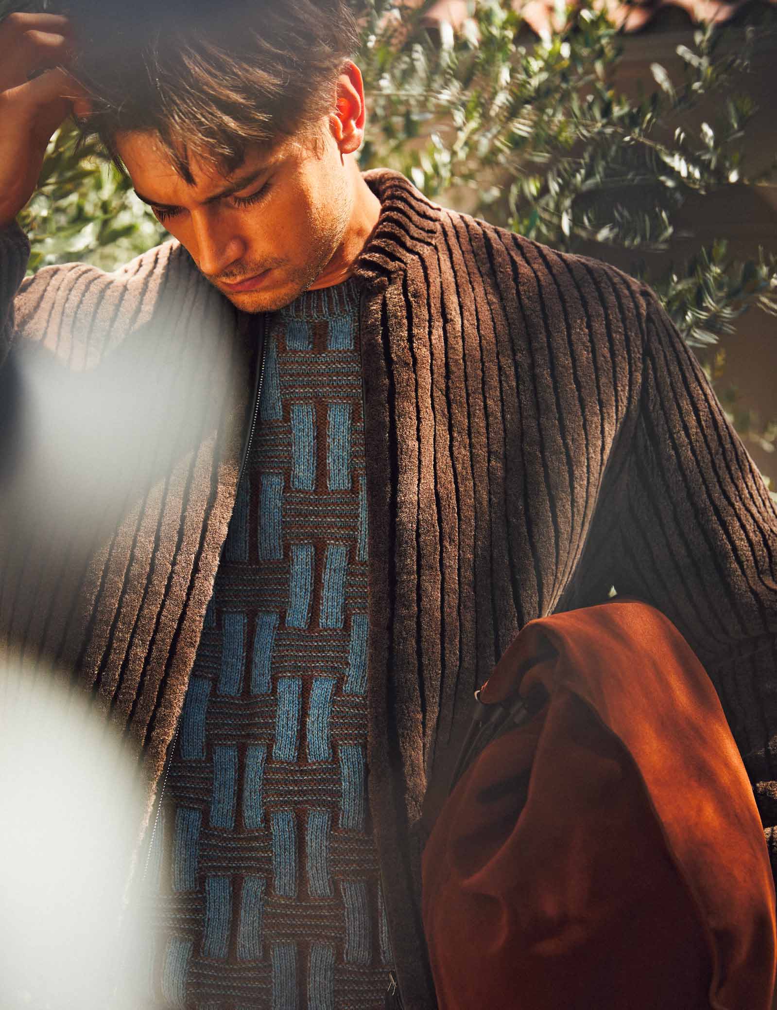 ブルゾン165万円、ニット30万8000円、 バッグ33万円(以上ジョルジオ アルマーニ/ジョルジオ アルマーニ ジャパン)