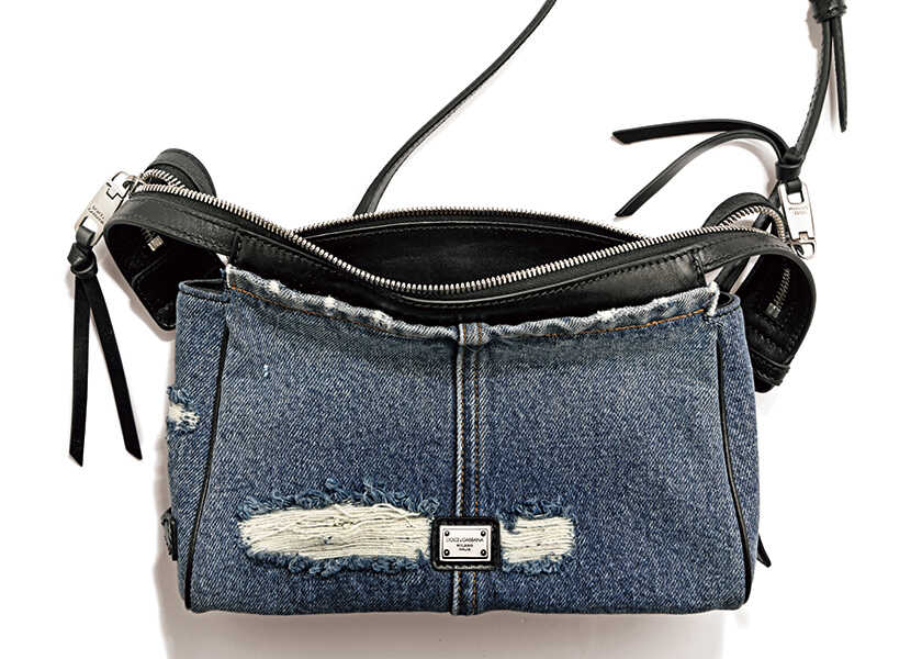で、ファッションで同じように強く、タフな“青”といえば、やっぱりブルーデニム。ピカピカのきれいな新品よりも、鍛え上げられた味わいやダメージがあるほうが格好いいっていうのも、なんだかアスリートに似ている!? そんなデニムの魅力をバッグで楽しめるのが、〈ドルチェ&ガッバーナ〉の新作。ブランドを象徴するダメージデニムの意匠を反映し、パンツのジップを思わせる開口部や、独特の二重ステッチを採用。デニムならではの武骨な風合いを“提げる”でたっぷり味わえる。名プレイはできずとも、いつものコーデへの巧みな変化球になるはず。