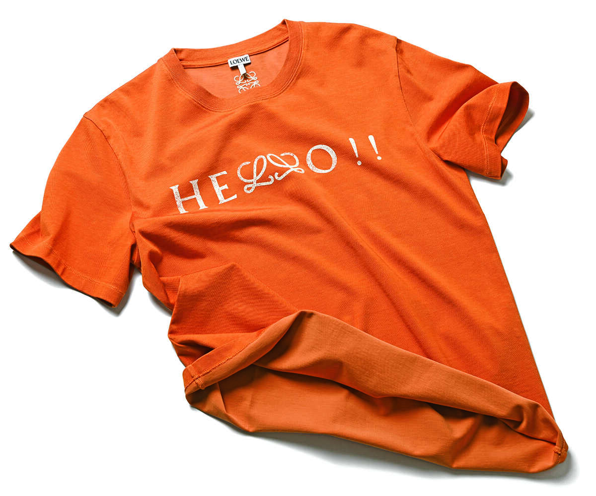 本格的に寒くなり、気分まで暗〜く落ち込みそうになる季節……。そんなときに、まるでカリフォルニアのような陽射しを連れてきてくれる1枚が、この〈ロエベ〉のTシャツ! あざやかなビタミンオレンジが目に眩しく、サンタモニカビーチの太陽を思い出させてくれる。見ているだけで波の音が聞こえてきて、着るだけでワクワクしてくるわけだけど、さらに胸元には“HELLO!!”と大きく書かれている。これ1枚で前向きなエネルギーをチャージできそう!?
