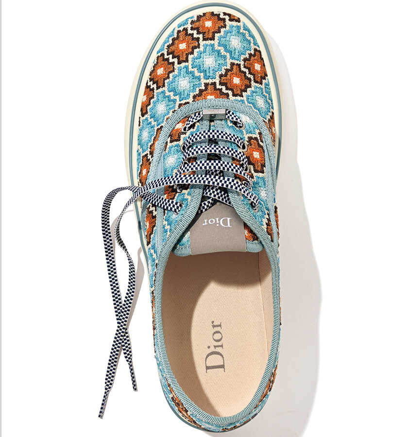 “ディオール ソルトウィンド”を履いたその日、最初の一歩で感じたのは、季節が切り替わる瞬間のような感覚だった。ブルーとオレンジの花柄のような刺繍が全面にあしらわれたスニーカーは、まるで潮風と陽射しを閉じ込めたかのよう。冬の朝でも、足元から爽やかでホッとするような空気が吹き上がってくる。