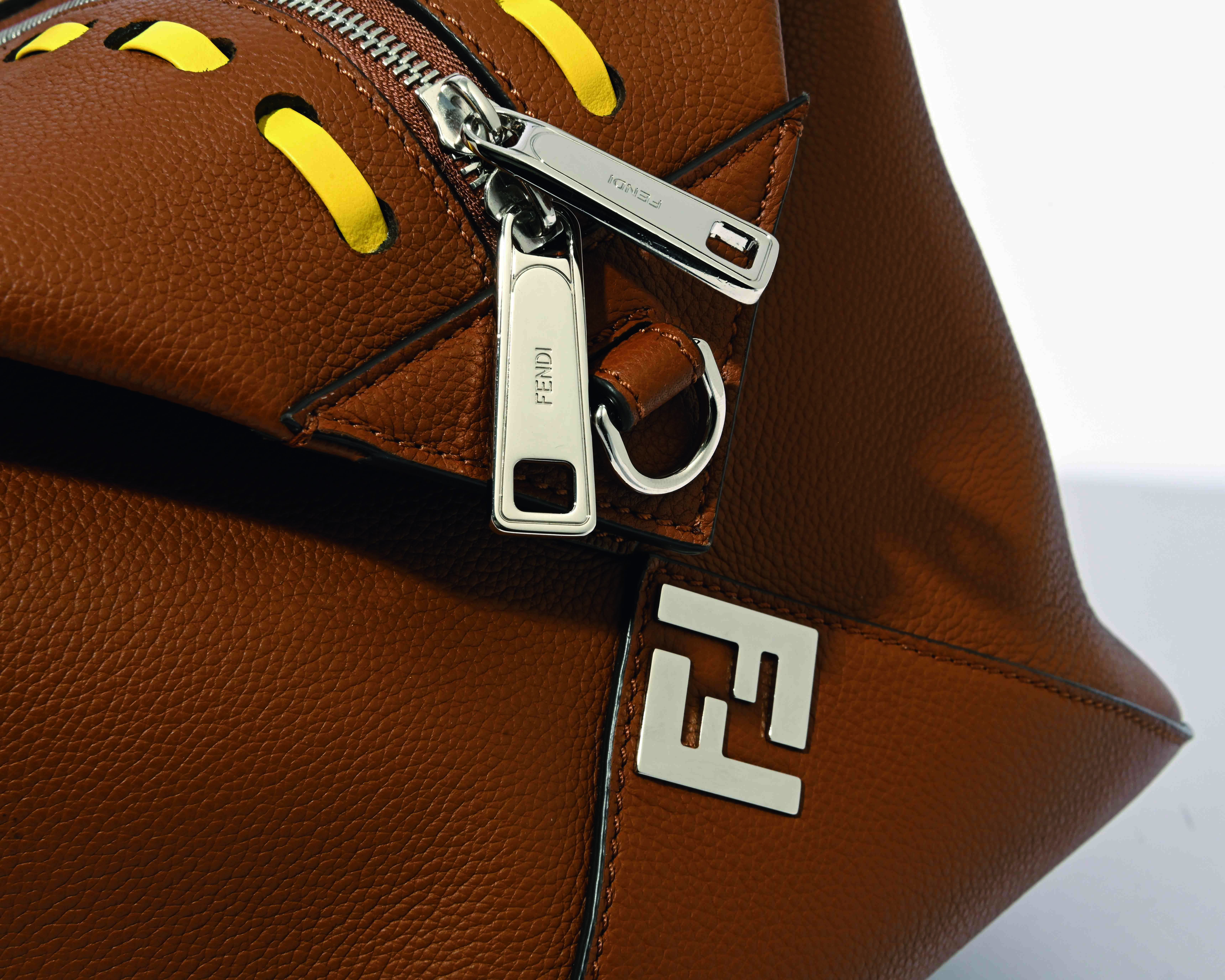 開口部とハンドルに施したイエローの“セレリア”ステッチの、ユニークで個性際立つデザインが魅力の“フェンディ ルイ ダッフル”。ボディには、上質なシボ感のあるレザーを採用し、遊び心と品格を兼ね備えた仕上がりとなっている。3月発売予定。W45×H22×D27㎝。予定価格54万6700円(フェンディ/フェンディ ジャパン)