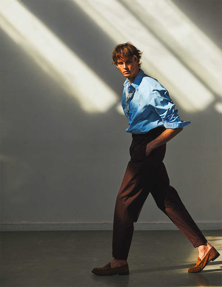 シャツ20万3500円、パンツ27万7200円、タイ4万4000円、シューズ18万7000円(以上サンローラン バイ アンソニー・ヴァカレロ/サンローラン クライアントサービス)