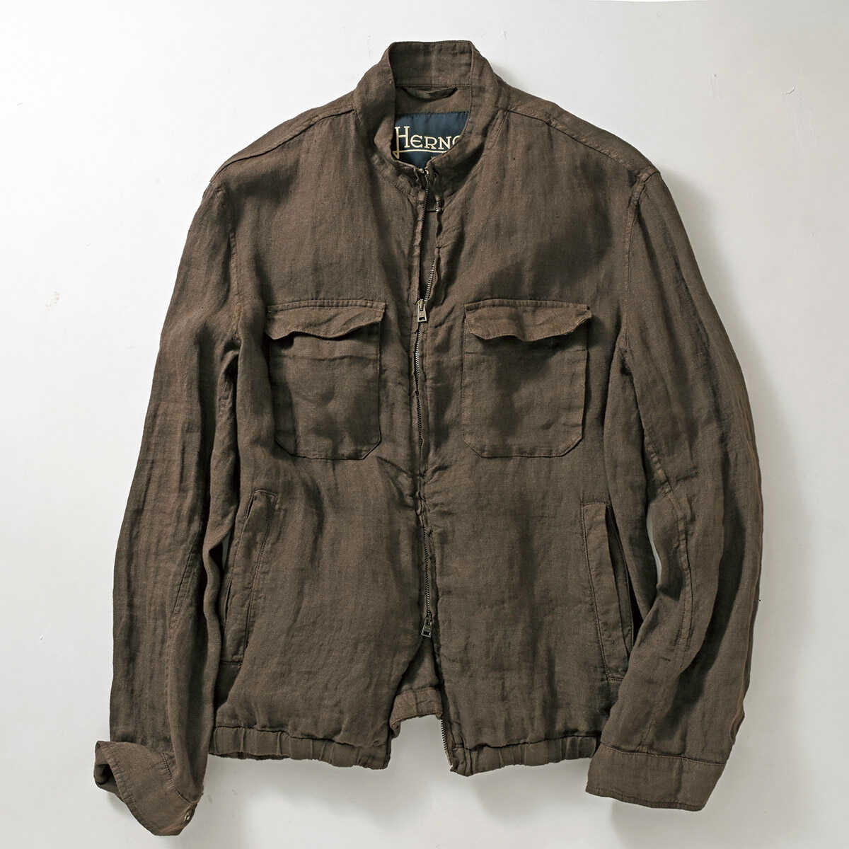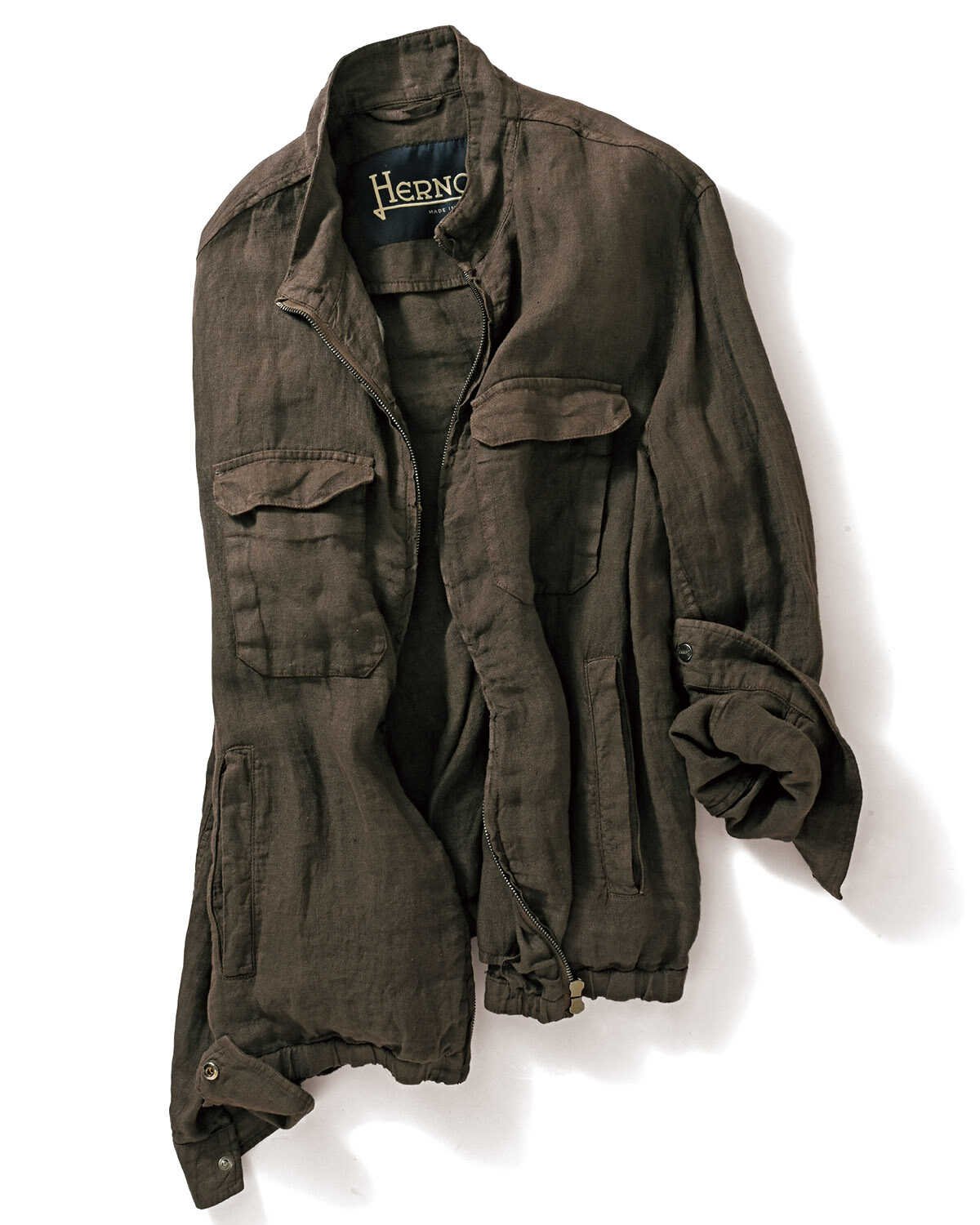 とろりとした柔らかなリネンを使用したブルゾン。胸元のダブルポケット、ボタン付きの袖など、シャツのように着こなしたい。9万9000円(ヘルノ/ヘルノ・ジャパン)