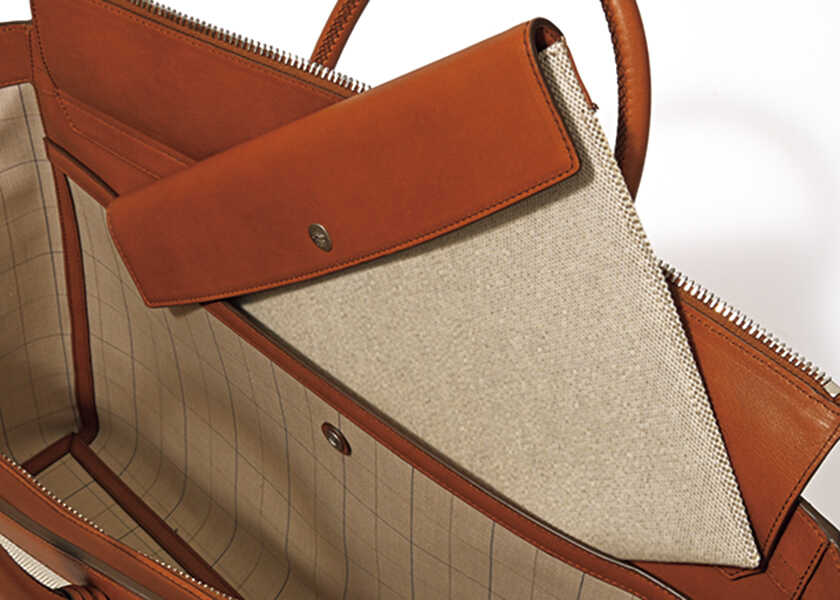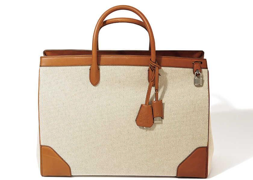 刻印入りチャームやメタル製パドロックにより、バッグが持つクラシックな雰囲気を強調。ハンドルもほどよい厚みがあって持ちやすく、収納力も高いため、使い勝手抜群。W40×H28×D14.5㎝。55万3300円(ダンヒル/ダンヒル)