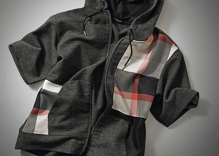 メジャーリーグの屈強な打者たちを多彩な変化球で翻弄するロサンゼルス・ドジャースの山本由伸。彼の投球フォームは、実にユニーク。足を高く上げることもなければ、大きなテイクバックもない。派手な予備動作はもちろん、腕を大きく振るようなこともない。そこにあるのは、余分なものをそぎ落とすことによって生まれた圧倒的なフォーム。“足し算”ではなく“引き算”の発想こそが、彼の圧巻の球威や制球力を支える強みとなっているのだ。そんな"引き算"的なマインドをお洒落で楽しませてくれそうな1着を、〈ブラックレーベル・クレストブリッジ〉で見つけた。クレストブリッジチェック柄をパッチワークのように部分的にあしらった、ハーフスリーブのフーディ。ブランドを象徴するアイコニックな柄を全面にあしらうのではなく、あえてアクセントに留めてしまう。この“引き算”のデザインこそが大人の余裕を感じさせるディテールとなり、クレストブリッジチェックが放つ“品のよさ”をより強く印象づけられるというわけだ。