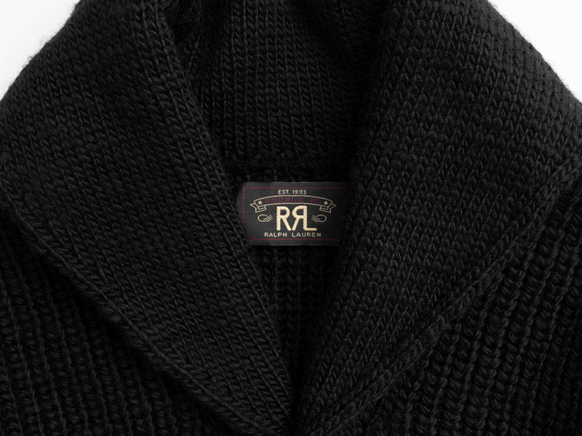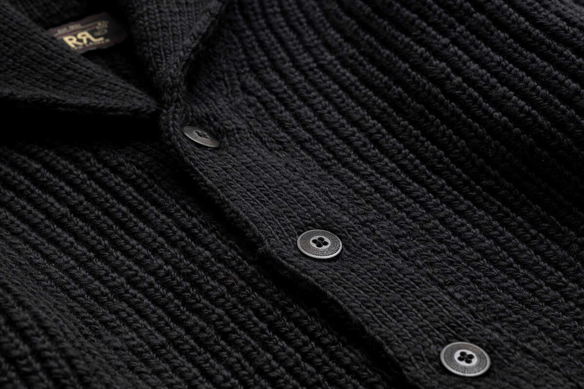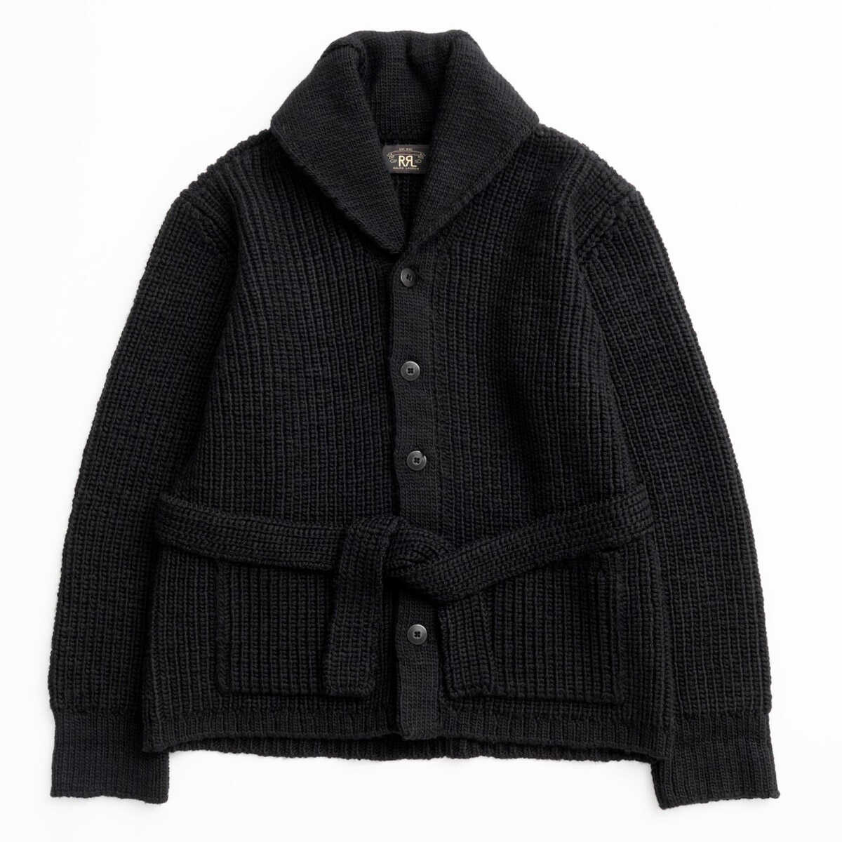 インラインにはない無地のオールブラックカラーで仕立てた。ショールカラーカーディガン26万4000円(ダブル アール エル フォー ロンハーマン/ロンハーマン)